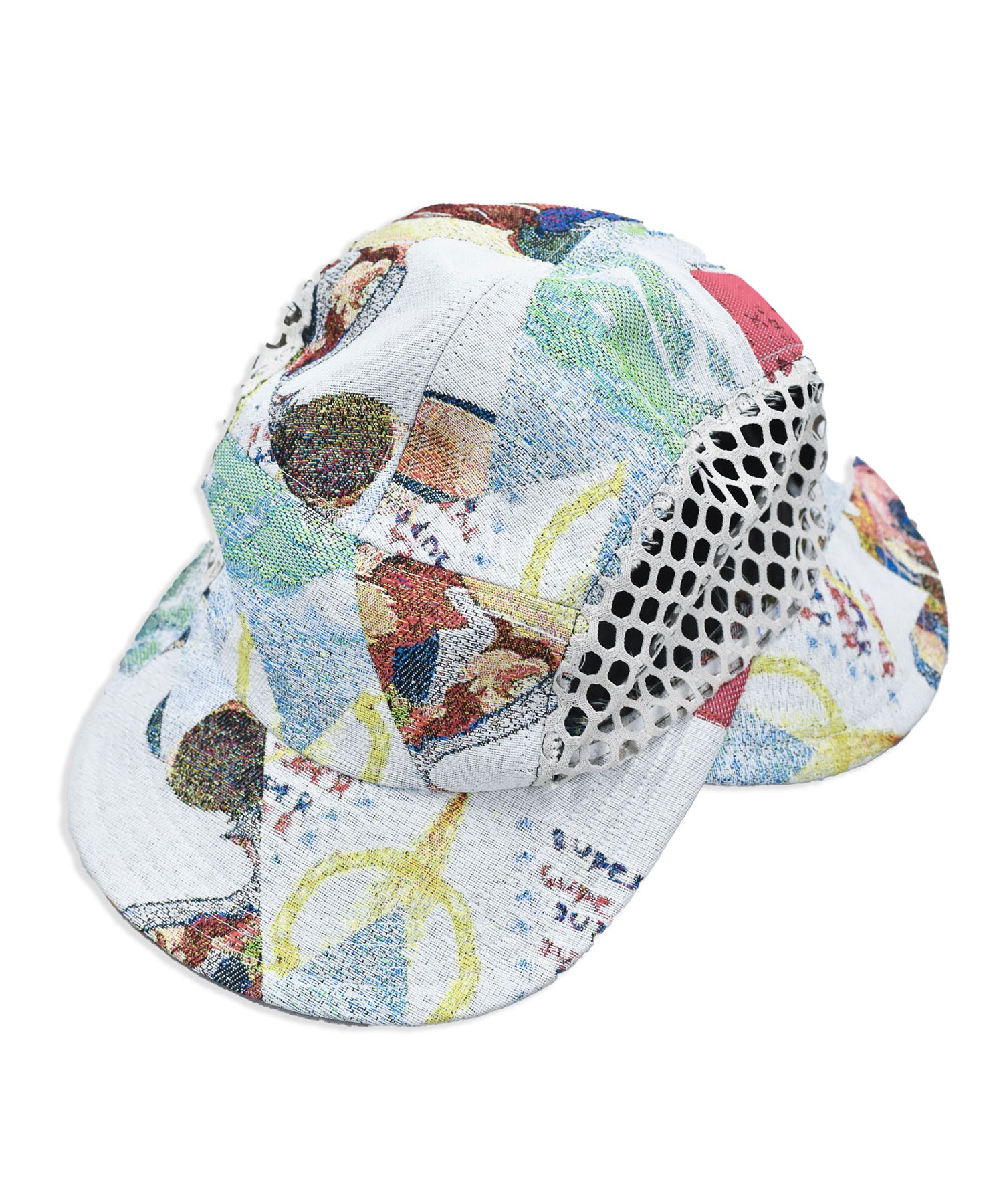 音楽ジャンルを超越したミュージシャンのアートワークをコラージュして織り上げた精緻なジャカード素材を使用した2WAY CAPです。