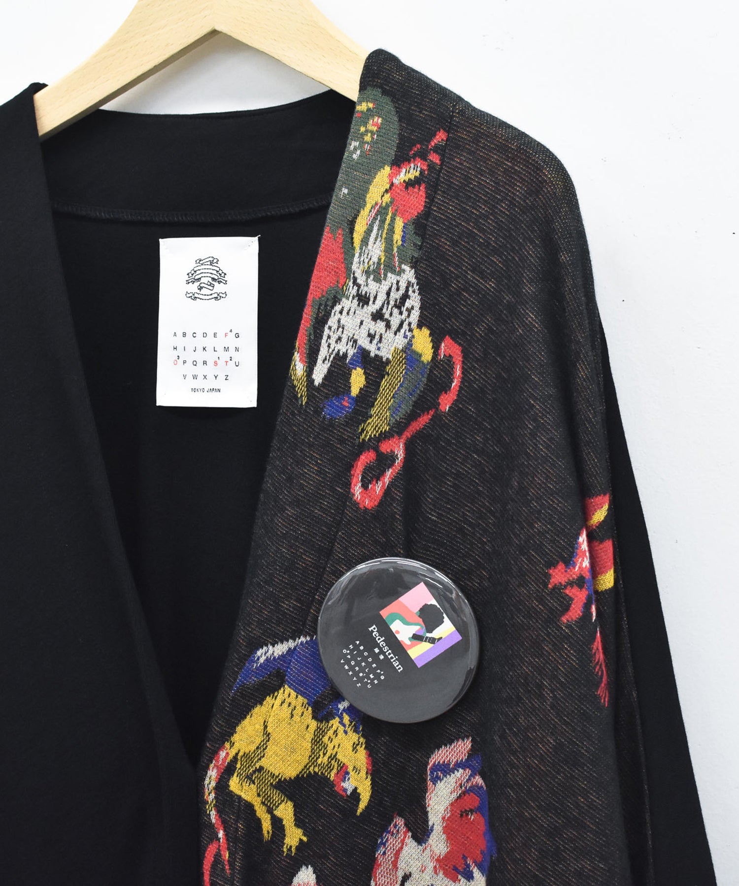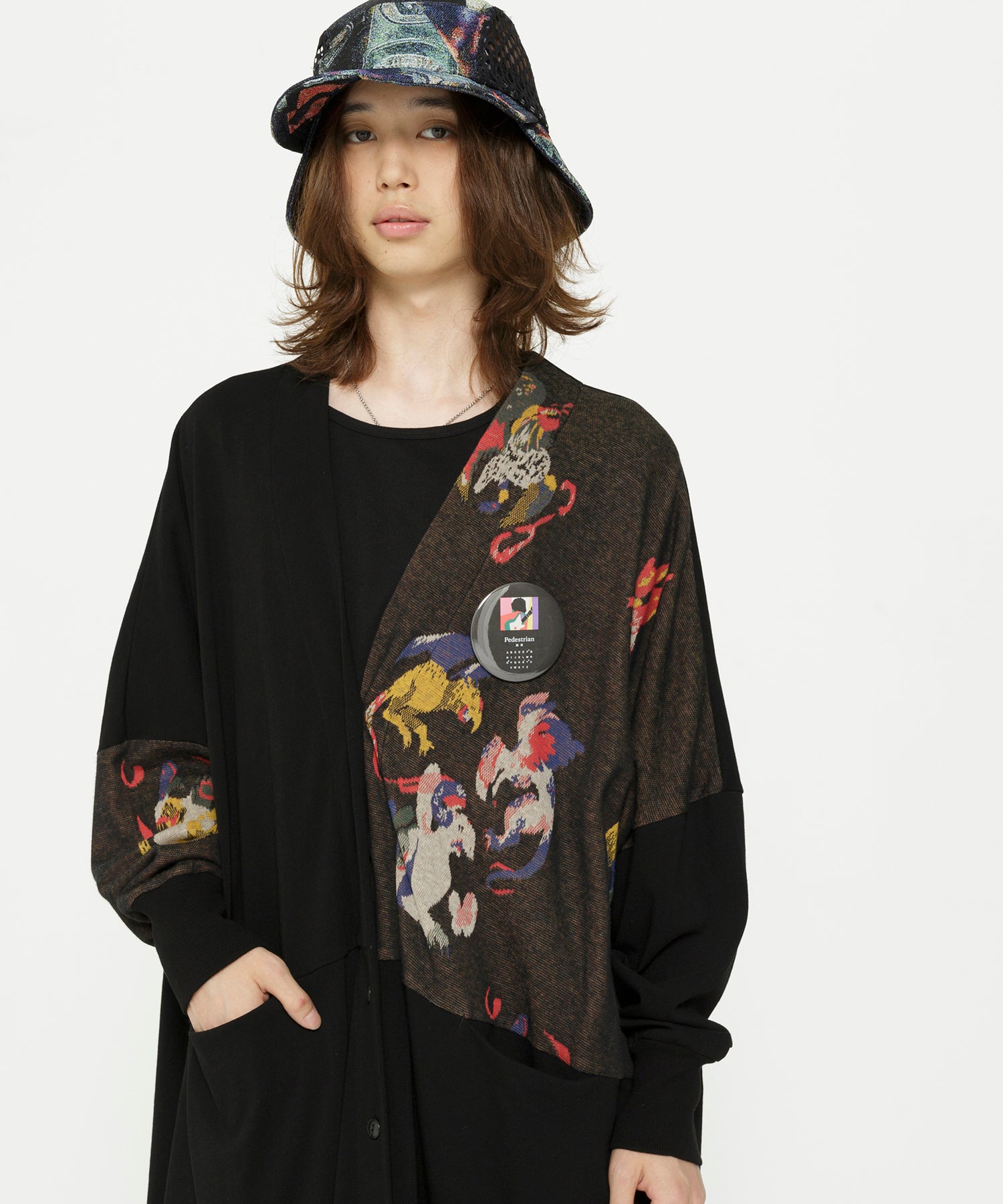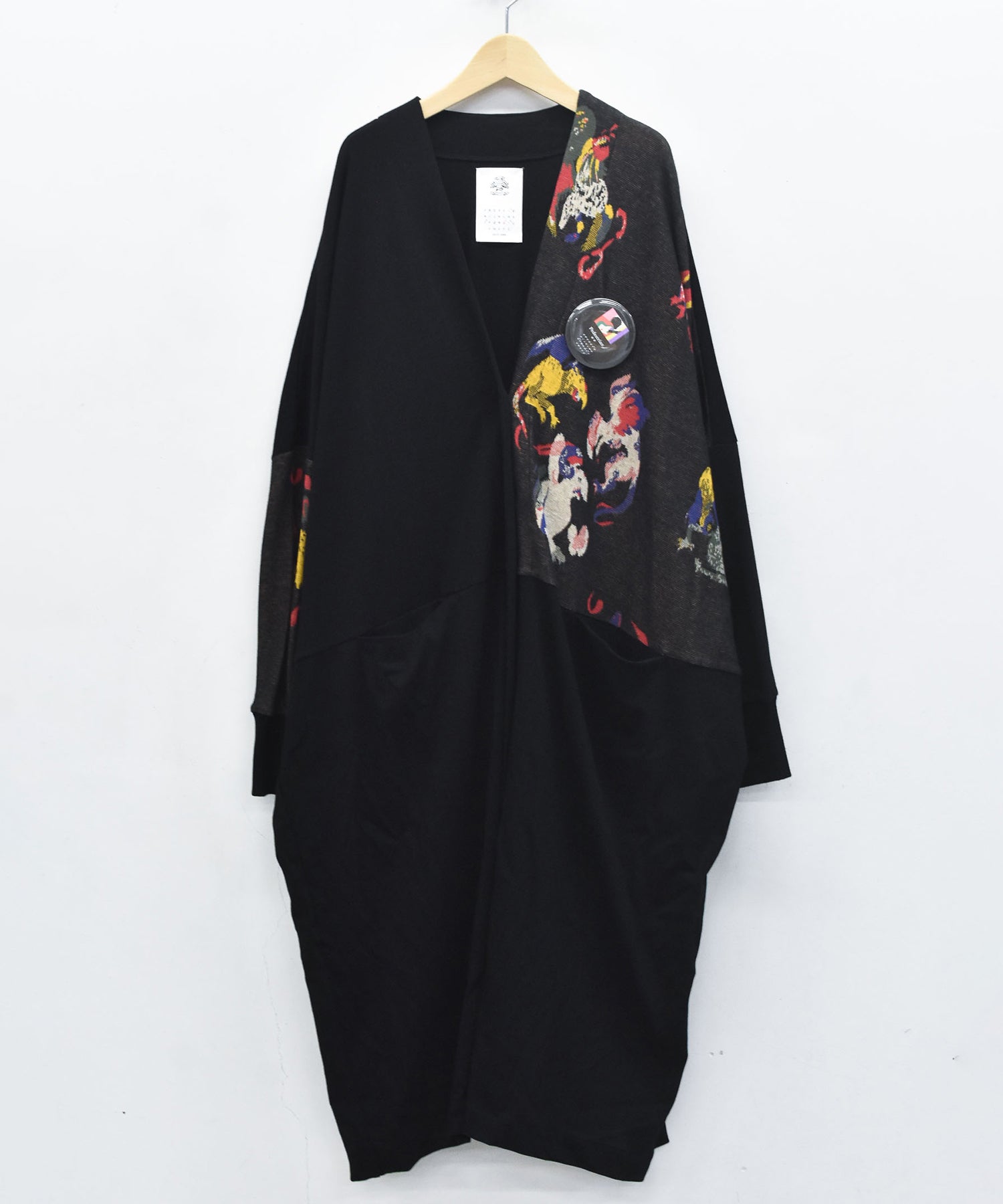 左胸と右袖にオリジナルのジャカードを使用し、アシンメトリーに仕上げた定番のガウンカーディガン。