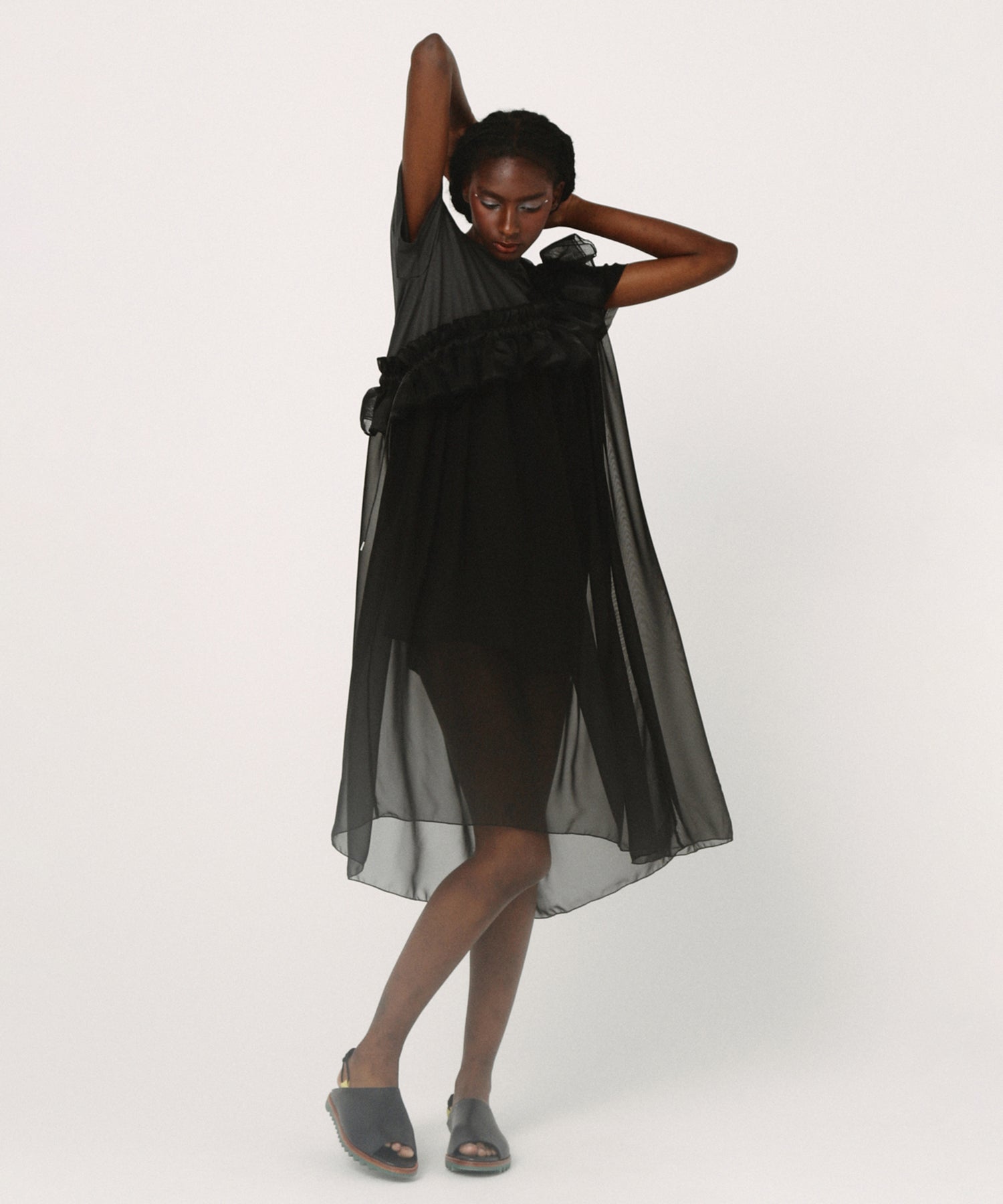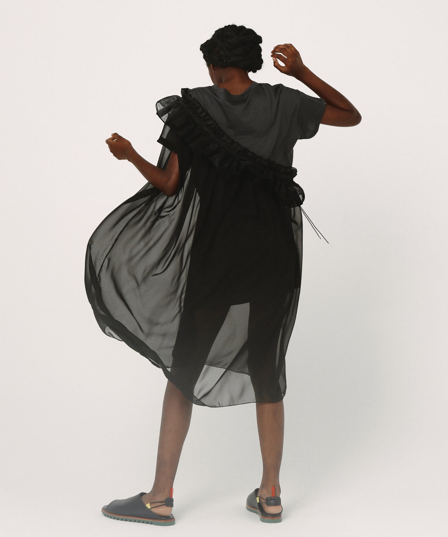 動きにあわせてなびくシルエット、軽やかな素材感を使用し、“なんだか踊りたい気分”を盛り上げました。