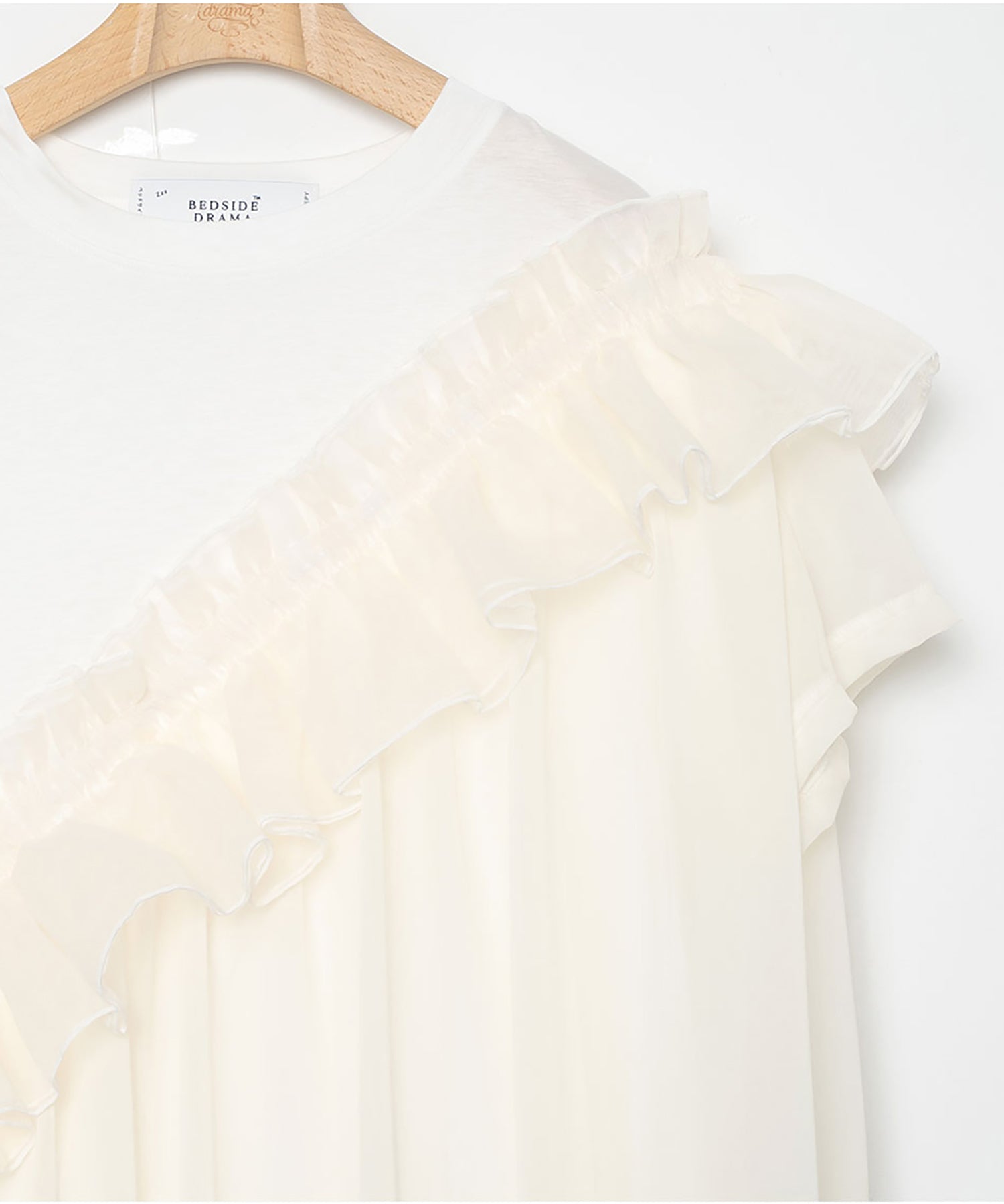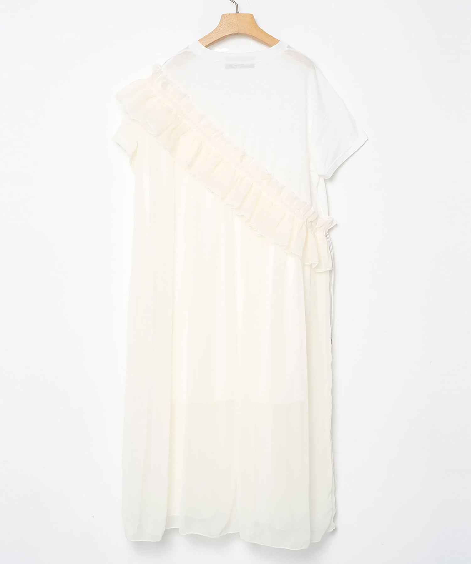 フリル部分に紐がとおっており、シルエットを変えて着こなすことも可能です。