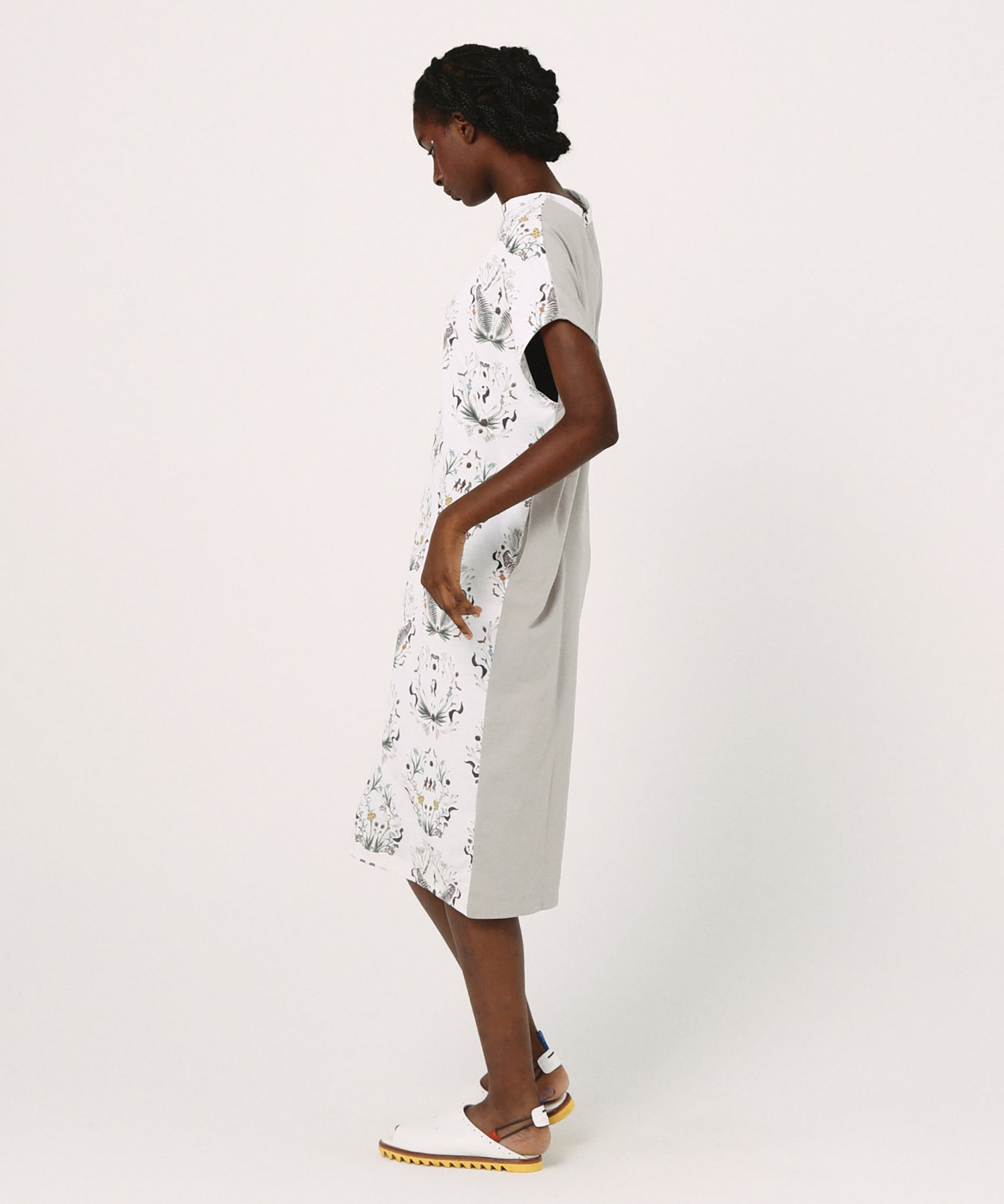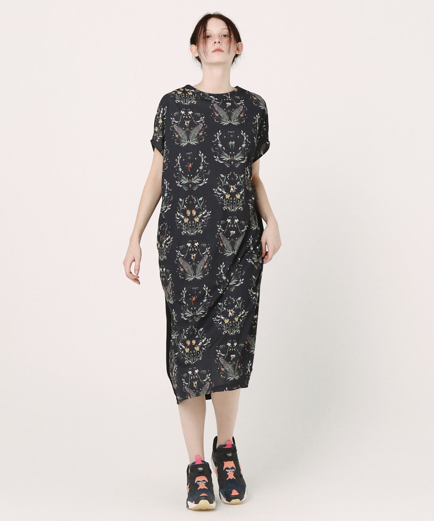 古今東西のダンスの名シーンを集結させたオリジナルのテキスタイルが魅力的な定番ノースリーブワンピース