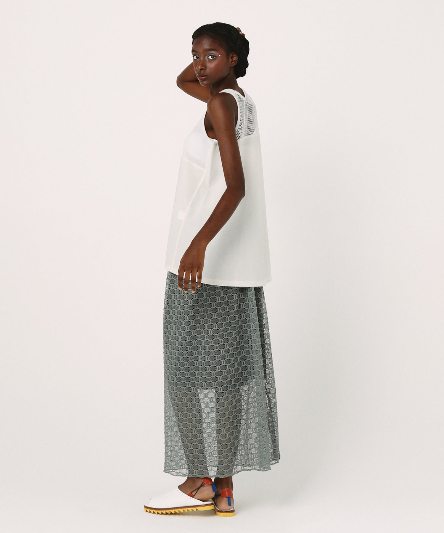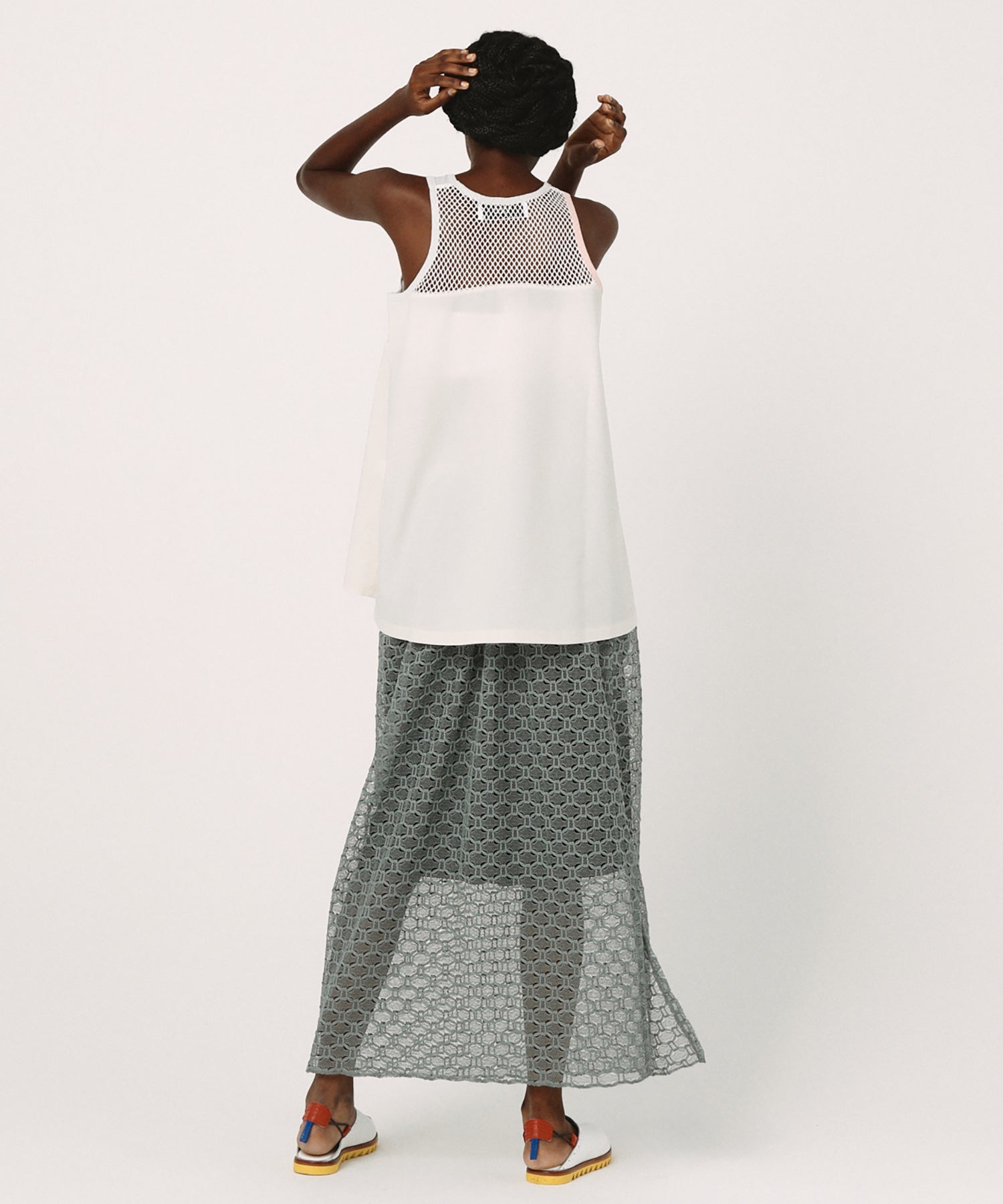 絶妙な異素材使いが小気味良く、涼しげなワンピースです。