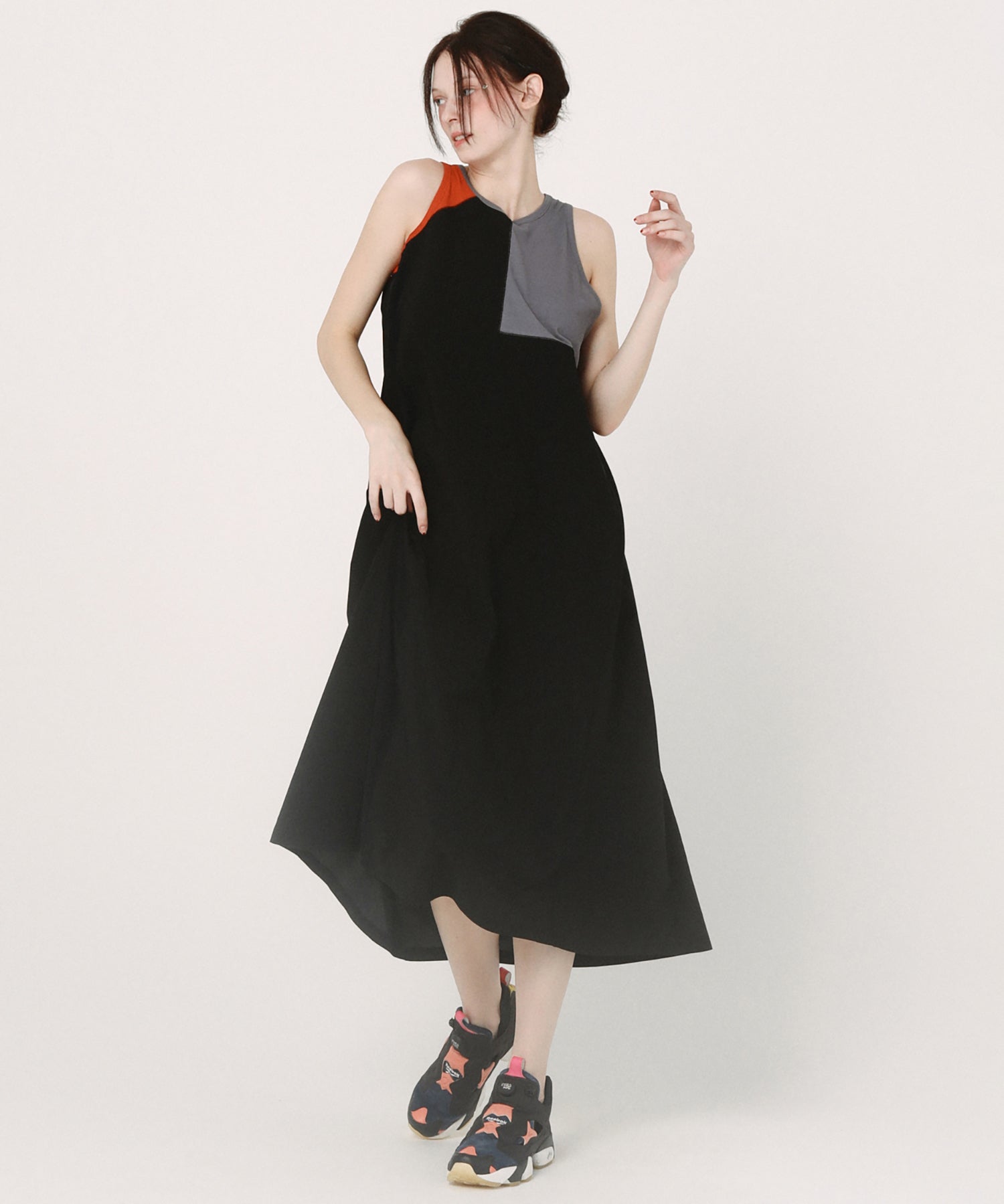 絶妙な異素材使いが小気味良く、涼しげなワンピースです。