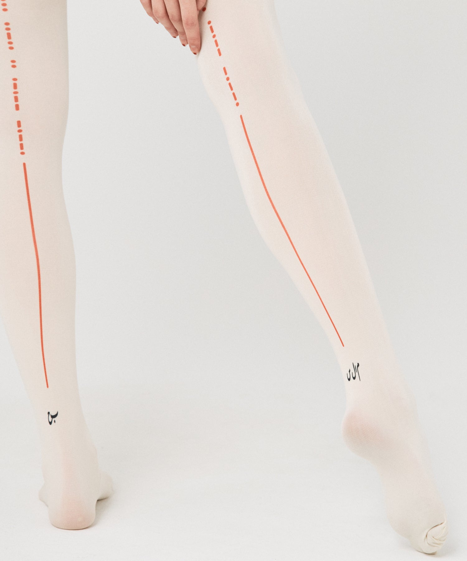 バレリーナをイメージして、極力シンプルに仕上げた26SSのプリントタイツ。