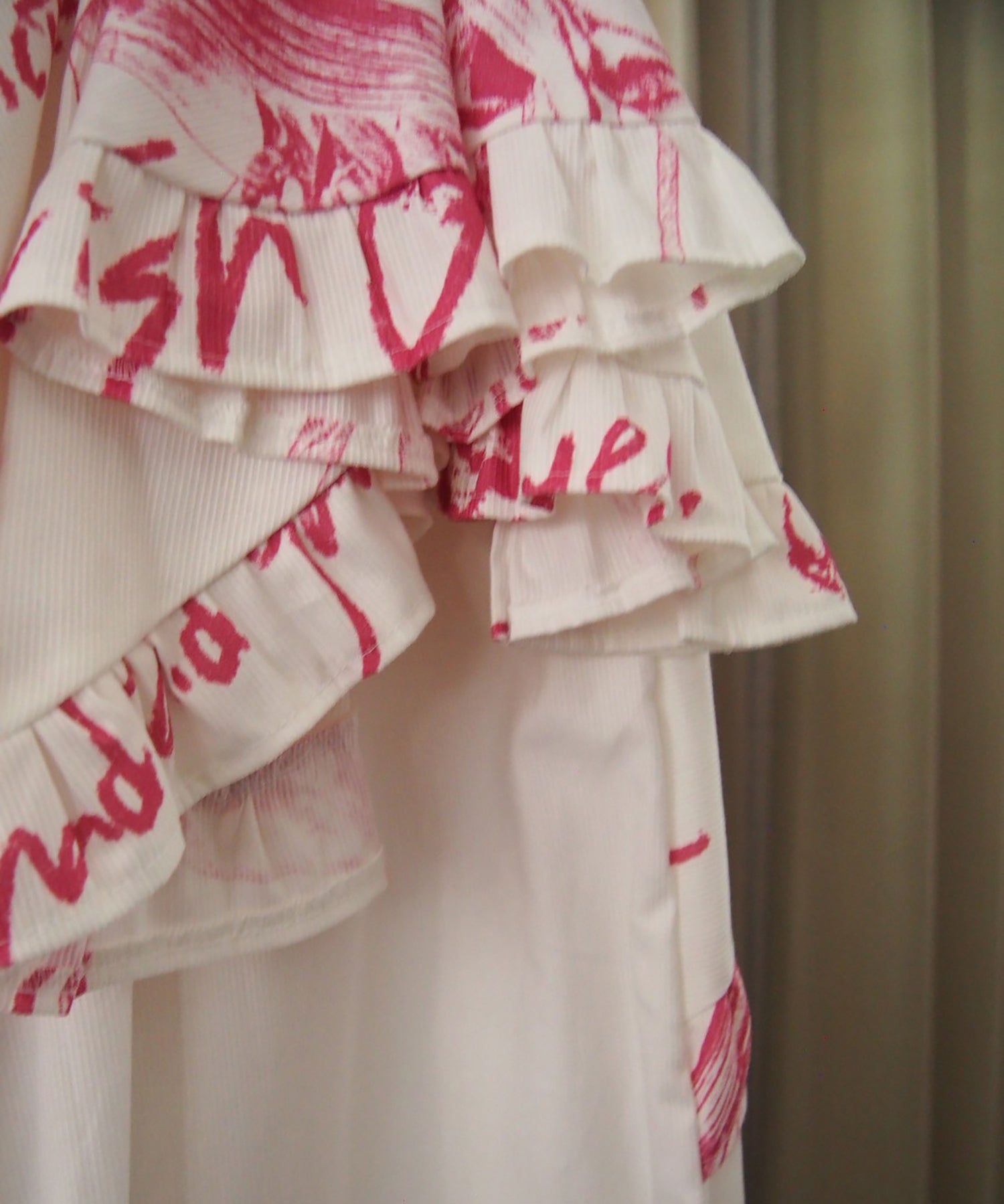 贅沢に生地を使用し、動くごとに表情を増していきます。