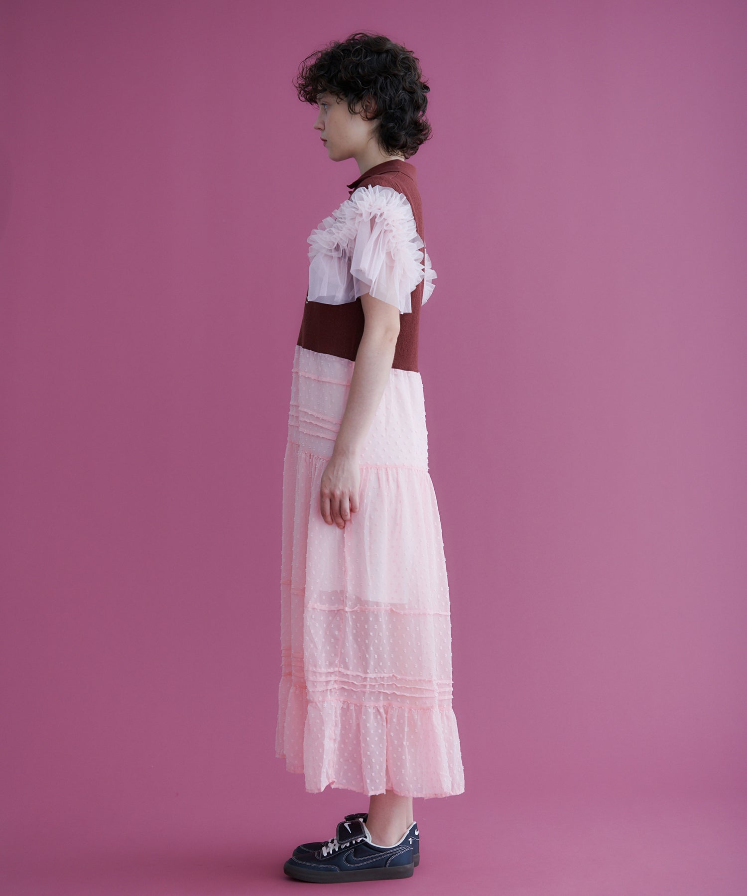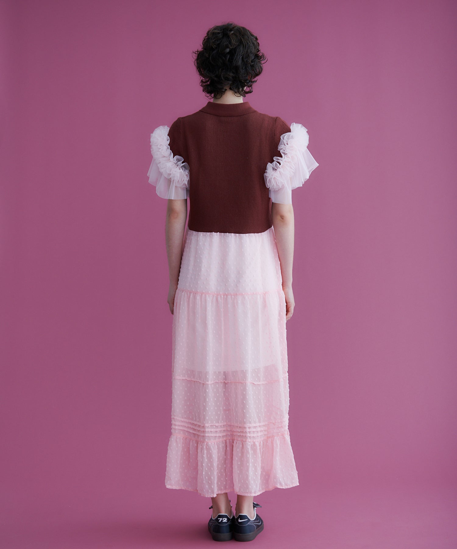oldhoney初のオリジナルサマーニットとソフトチュール素材を組み合わせてデザインしたワンピース。