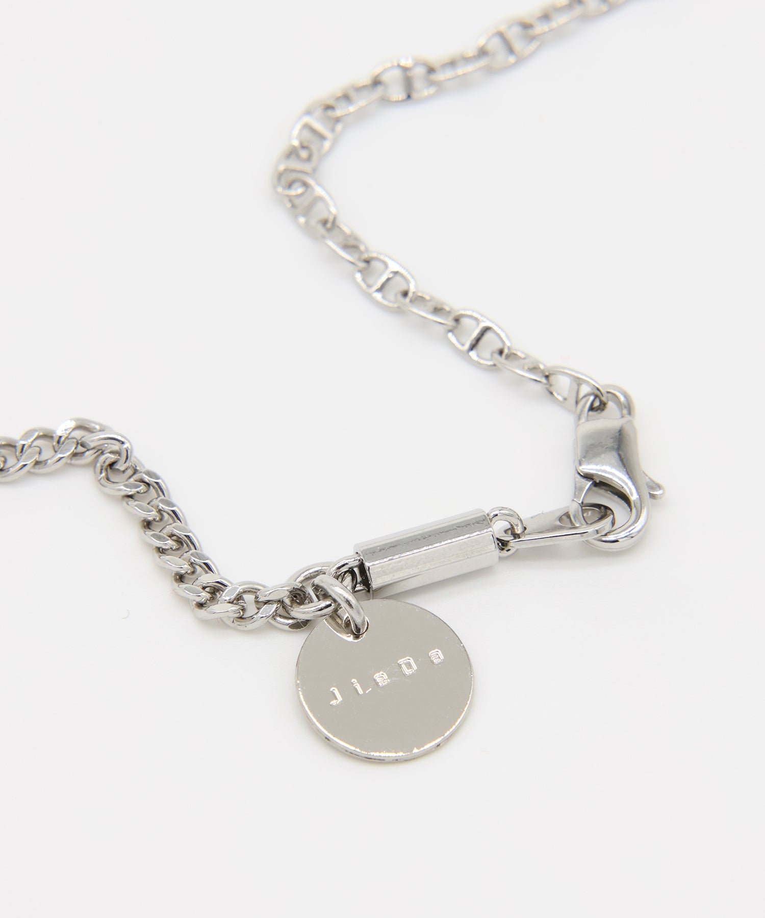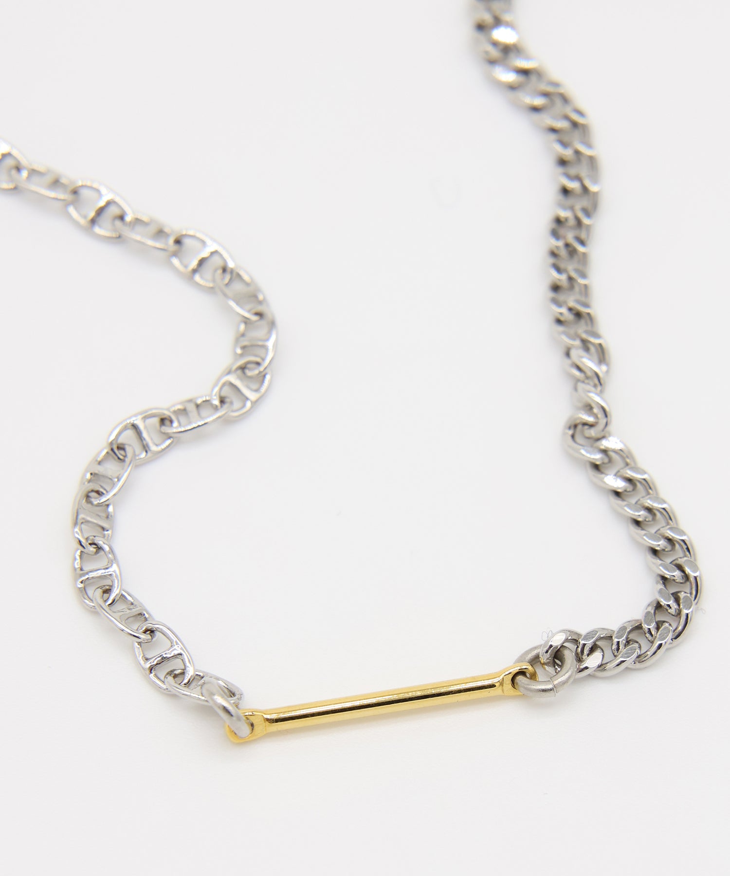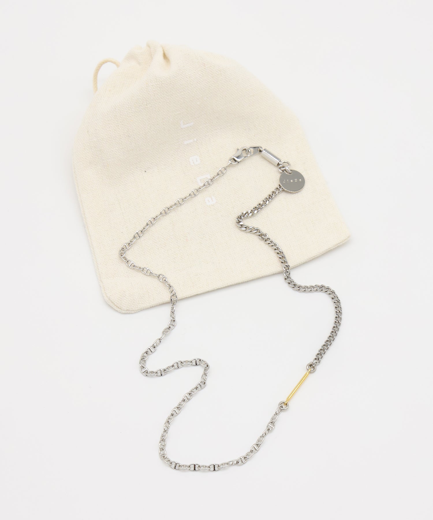 異なる細身のチェーンをミックスさせた人気のネックレス。