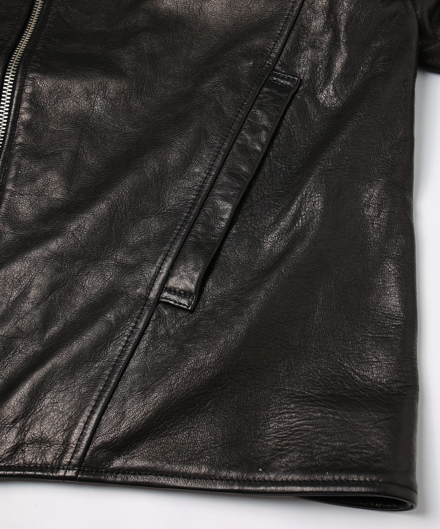 ゴートレザーを使用した、柔らかくしなやかな風合いが魅力のレザージャケット。