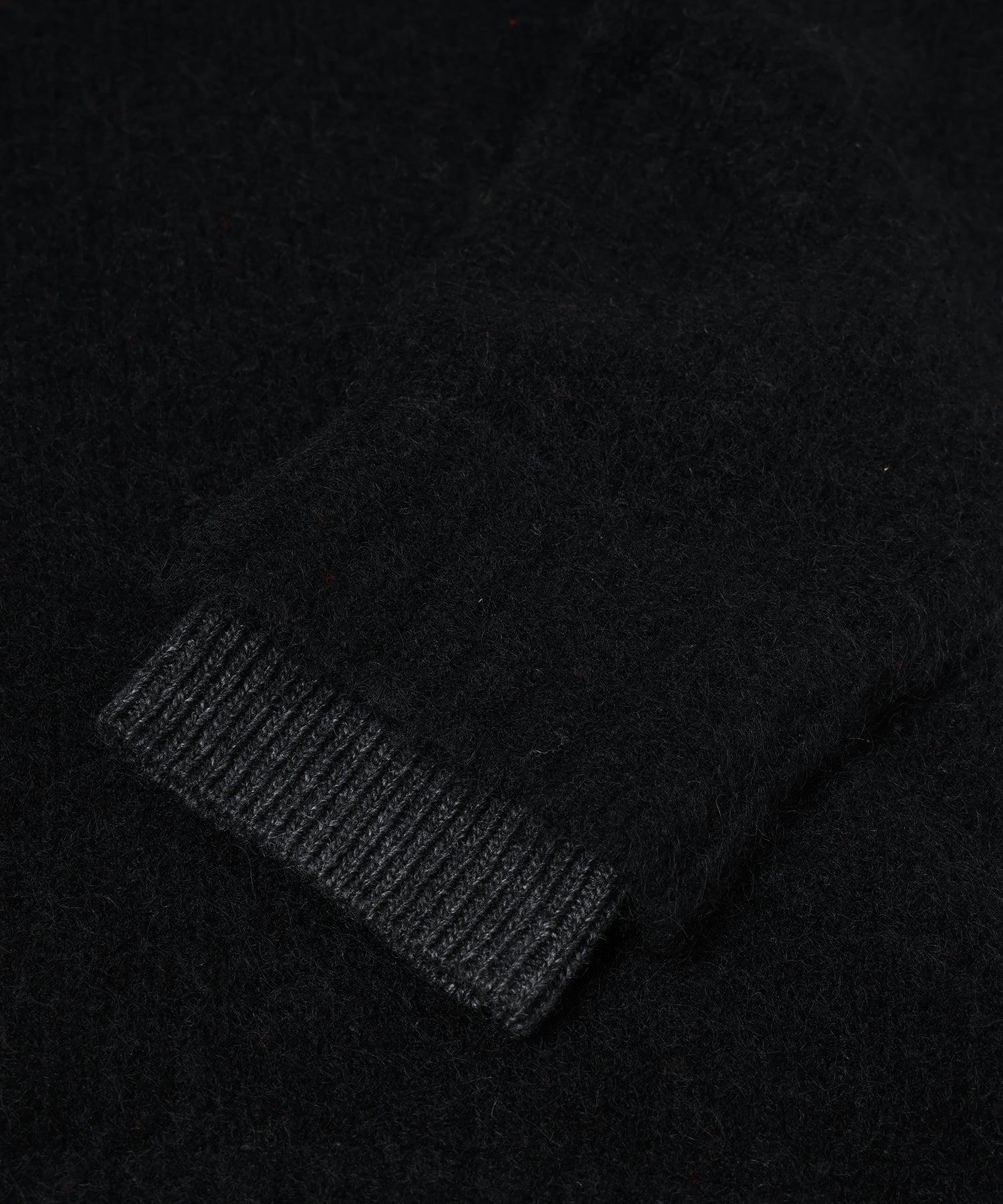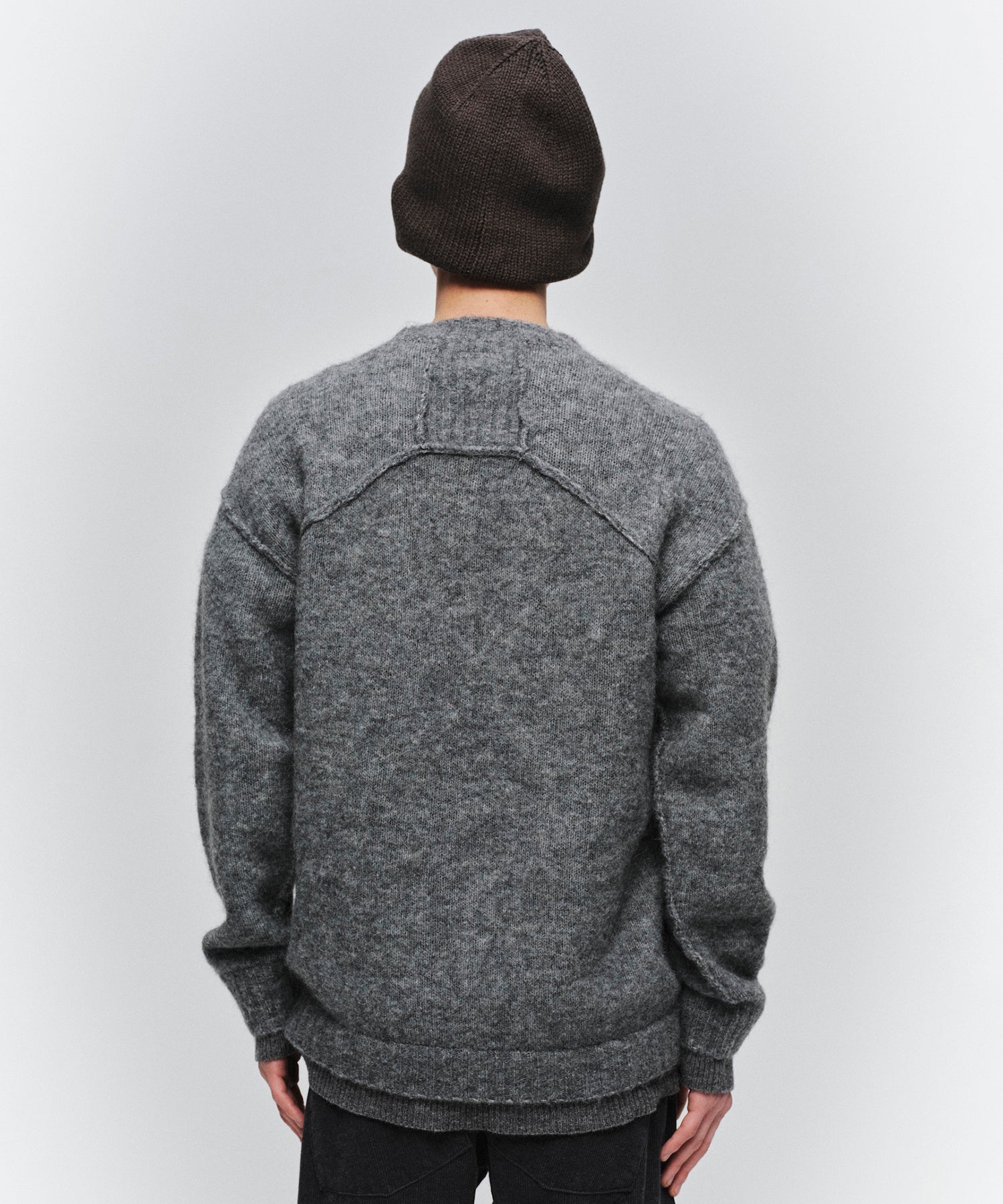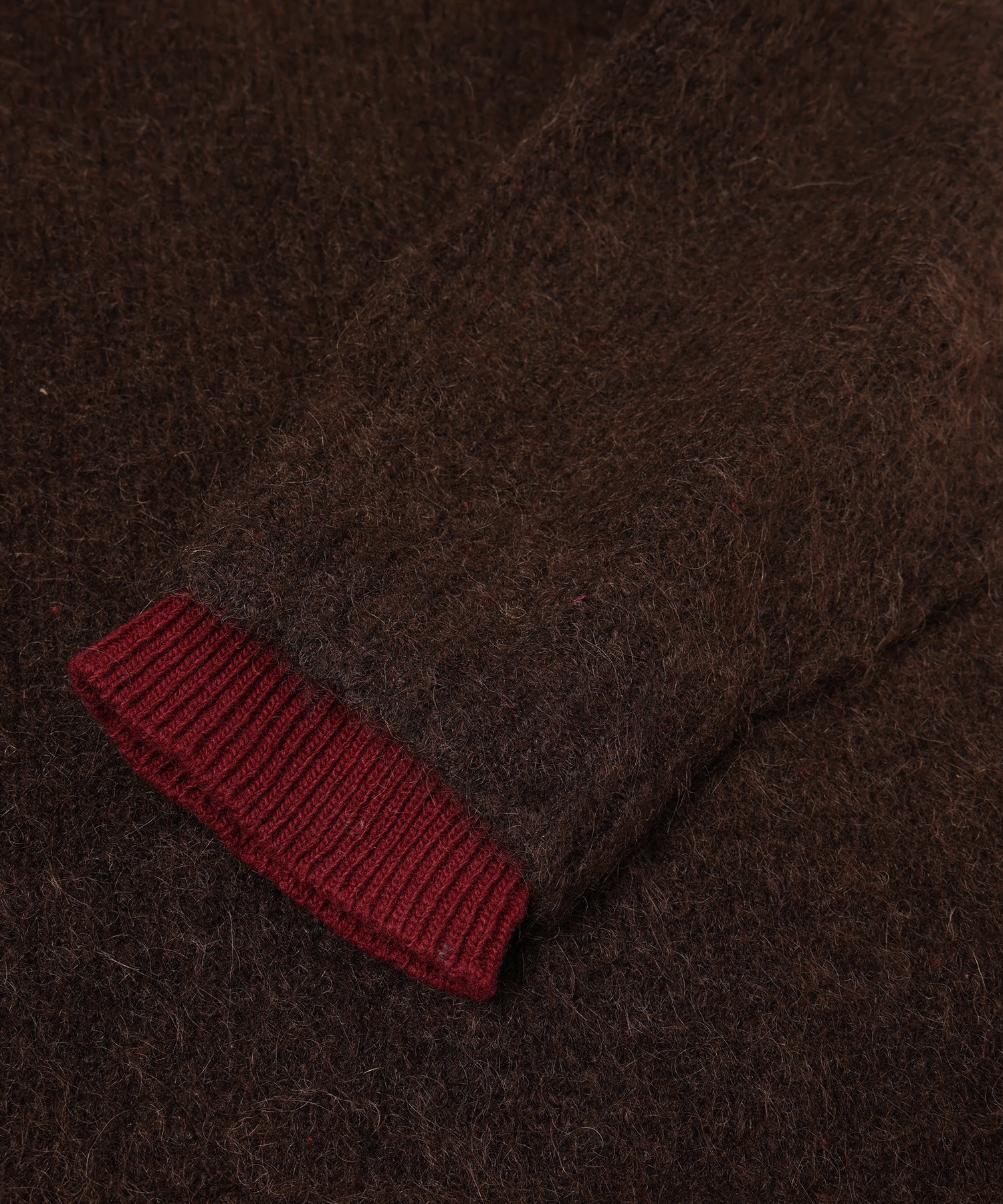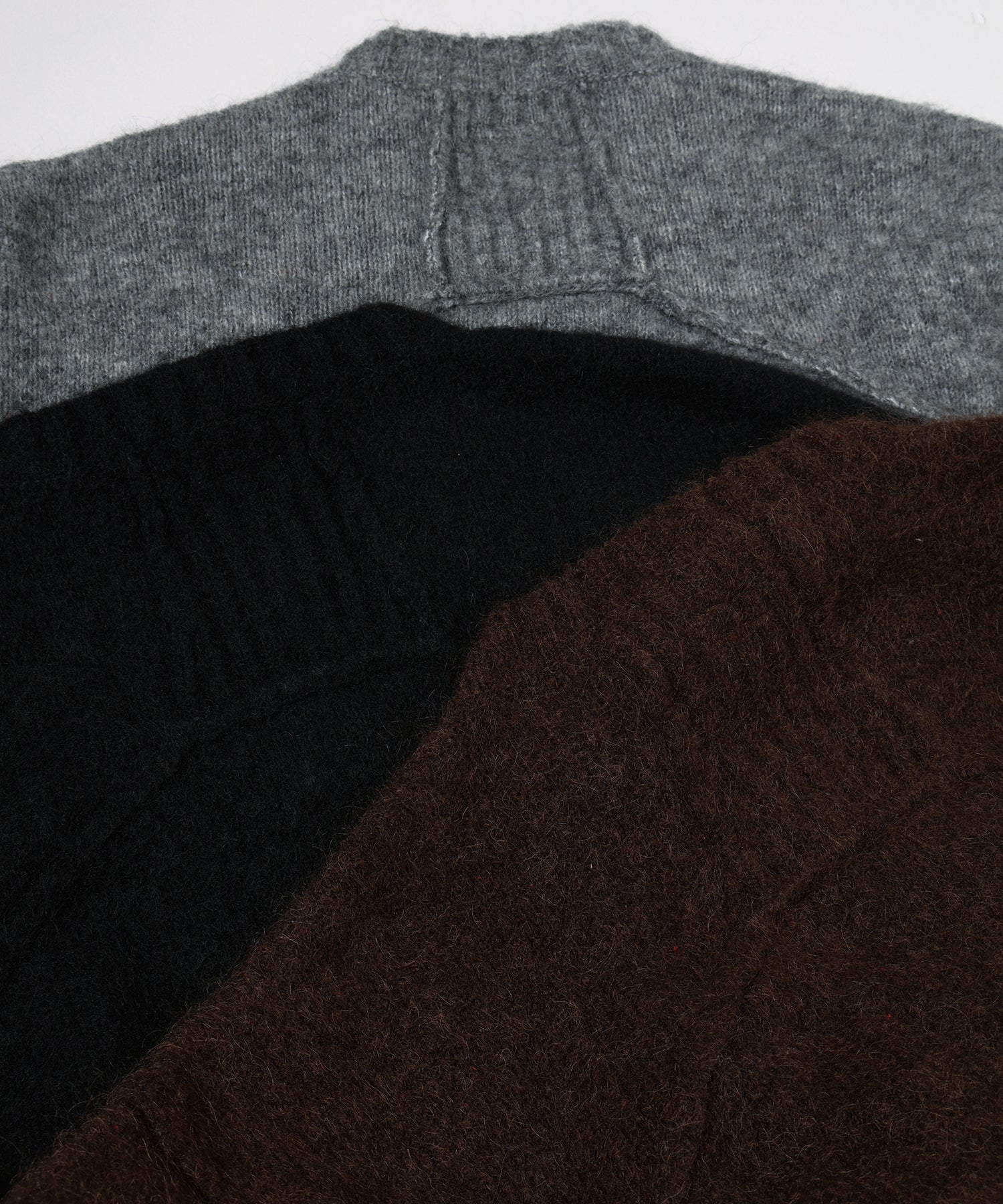 ナイロン、ウール、モヘア、ポリウレタン混紡の糸で作られた生地は、軽さ、柔らかさ、暖かさを兼ね備えています。