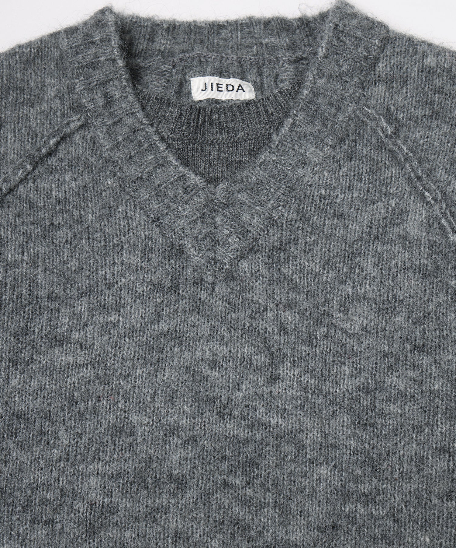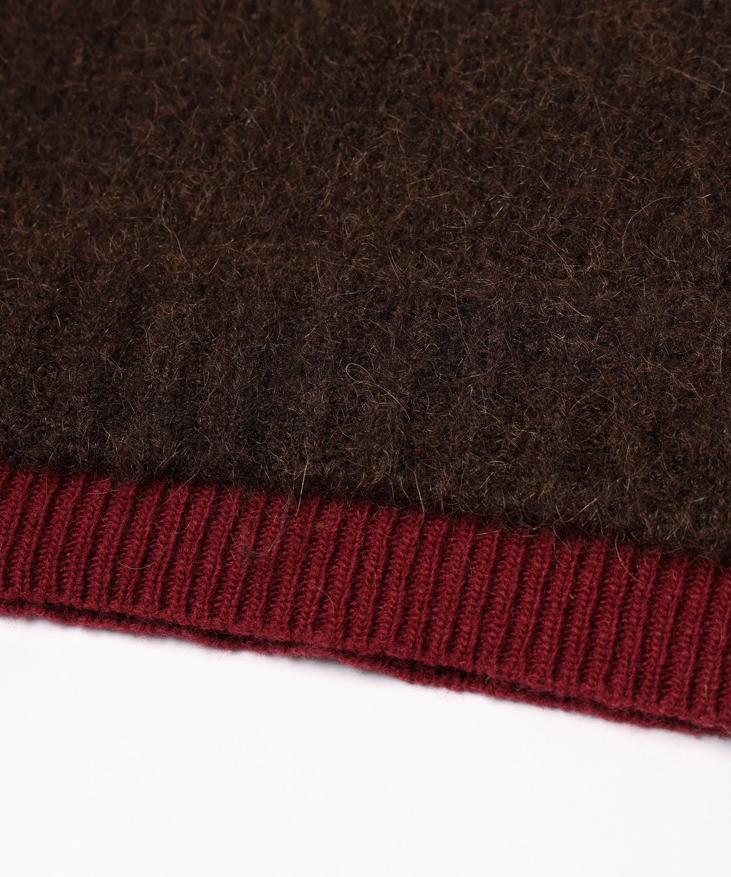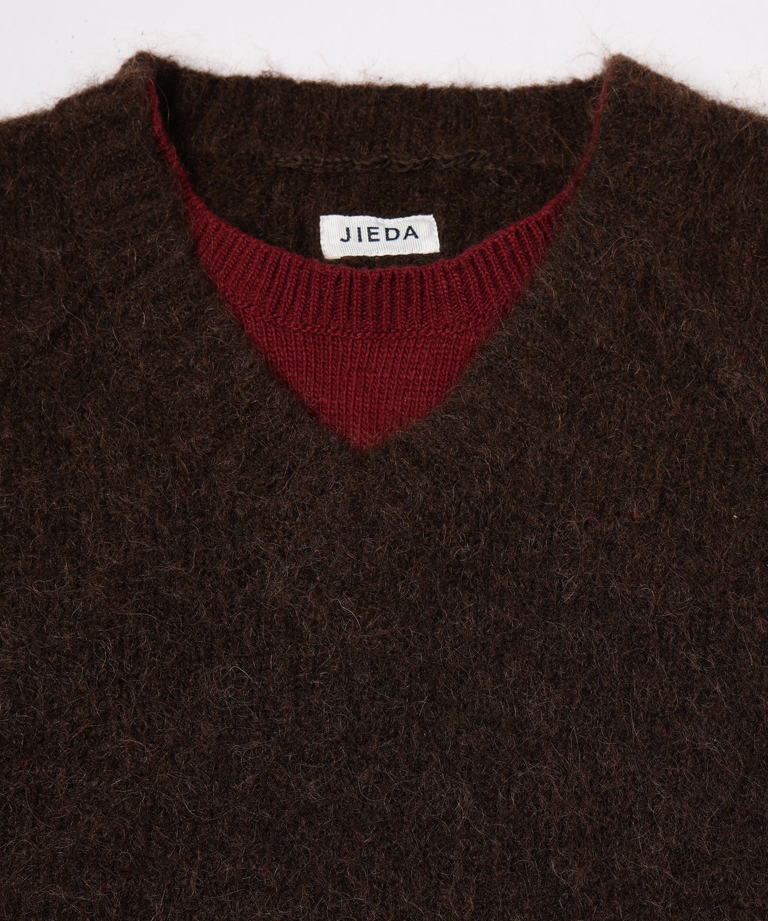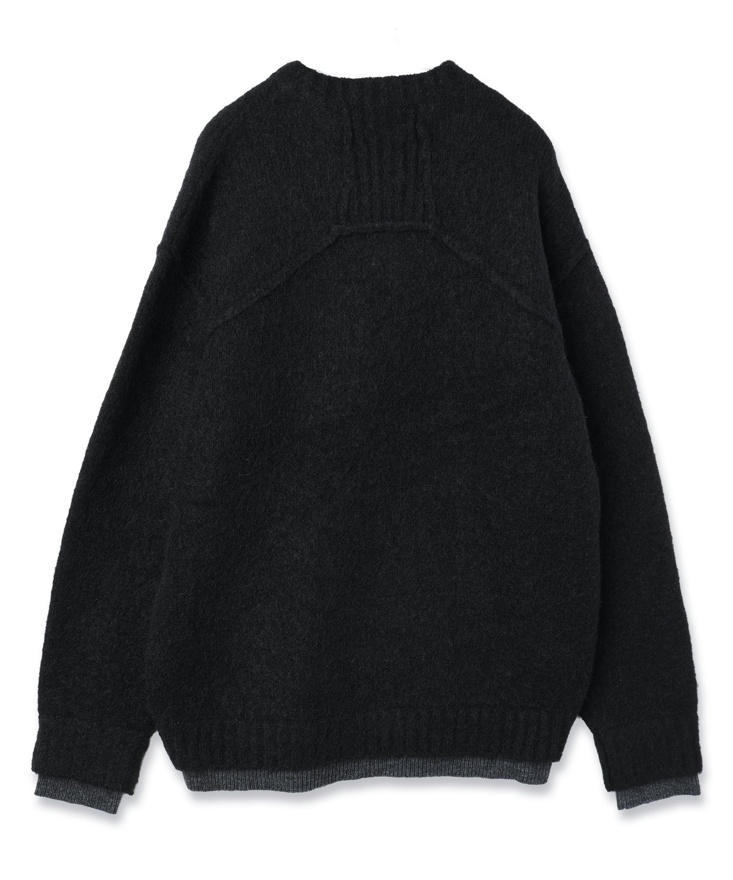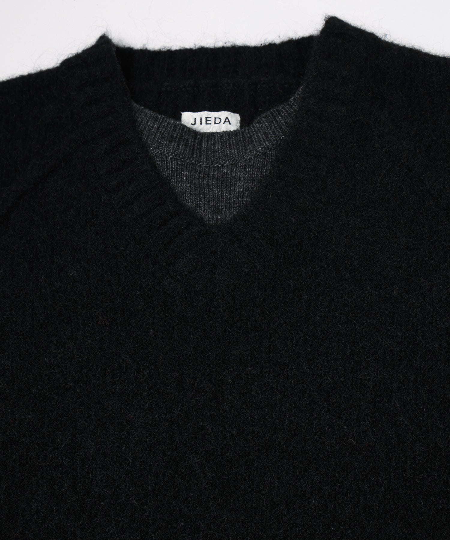 異素材を組み合わせたレイヤードが特徴的な、Vネックニット。